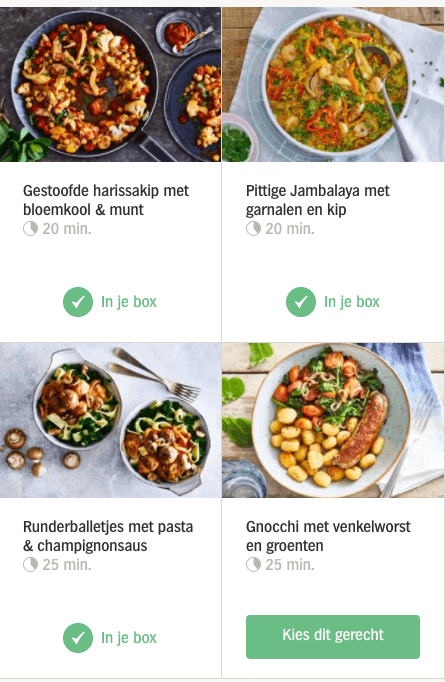3. Klik op inspiratiebox of familiebox en kies drie van de vier gerechten