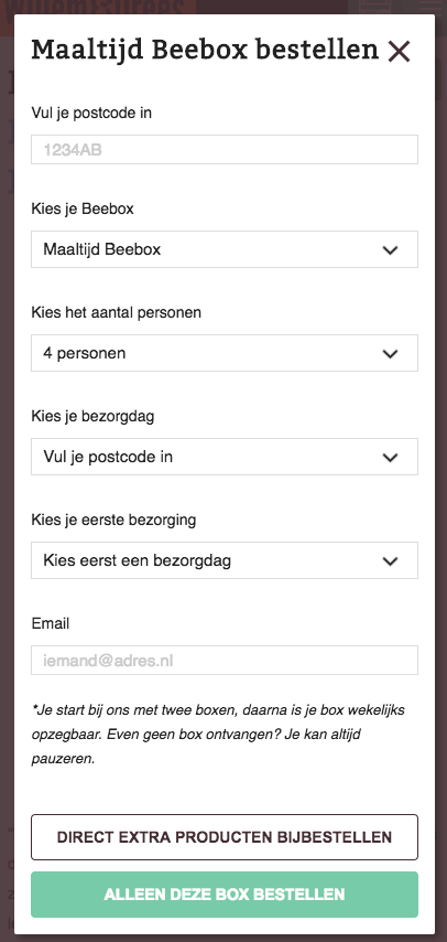 - Minimaal twee keer een box afnemen, flexibel abonnement (pauzeren)