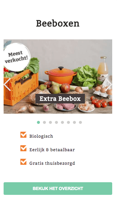 Veel mensen willen weten welke recepten er deze week in de box zitten. Waarom? Mochten deze niet in de smaak vallen kun je eventueel de box pauzeren of opzeggen. Op de website kun je in je account al vooraf bekijken wat er in de box van volgende week zit. Onze ervaring is dat er veel afwisseling in de gerechten zit. De ene week kook je echt Hollands, de andere week juist totaal niet. Door deze afwisseling zijn veel consumenten erg positief over dit product. Elke week weer nieuwe smaken en recepten. Dat houdt het koken leuk maakt dat kinderen bijvoorbeeld veel verschillende groenten leren eten. Het biologische karakter komt niet alleen terug in de producten maar in het gehele concept. Enthousiast geworden? Bestel dan de huidige Beebox aanbieding!