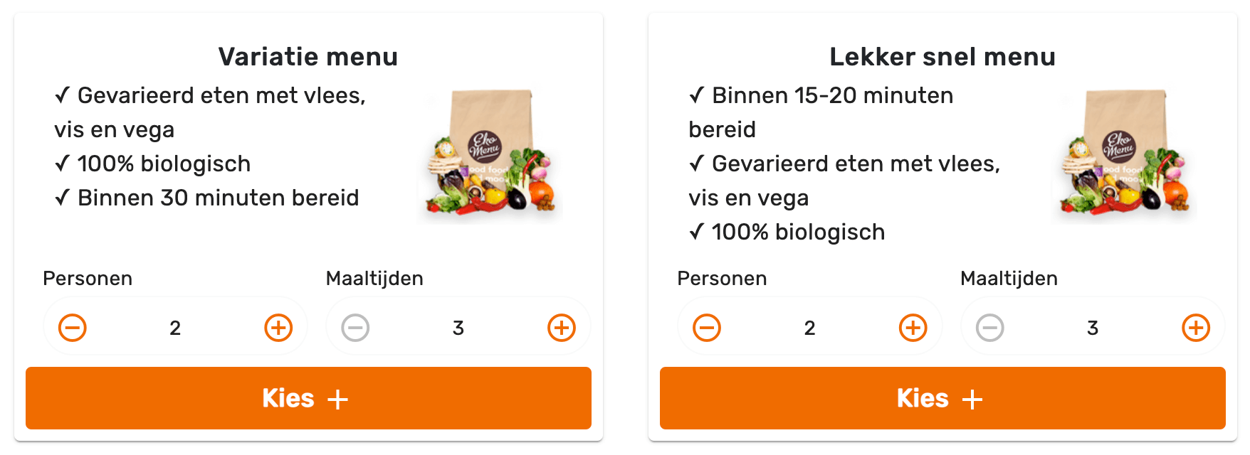 Bevalt Ekomenu en wil je vaker een menu thuisbezorgd krijgen? Dan kan het abonnement uitkomst bieden. Via “Mijn Ekomenu” kun je op ieder moment jouw lidmaatschap wijzigen of pauzeren of stopzetten. Via jouw account kun je ook switchen van menu. Zorg dat je wijzigingen ruim op tijd doorvoert. Daarna worden de boxen namelijk klaargezet voor levering op bijvoorbeeld vrijdag, zaterdag, zondag, maandag of dinsdag. Uniek is dat je per gerecht het aantal personen kunt wijzigen. Je kunt jouw bestelling eenvoudig uitbreiden met onder andere fruit-, groente en soeppakketten.