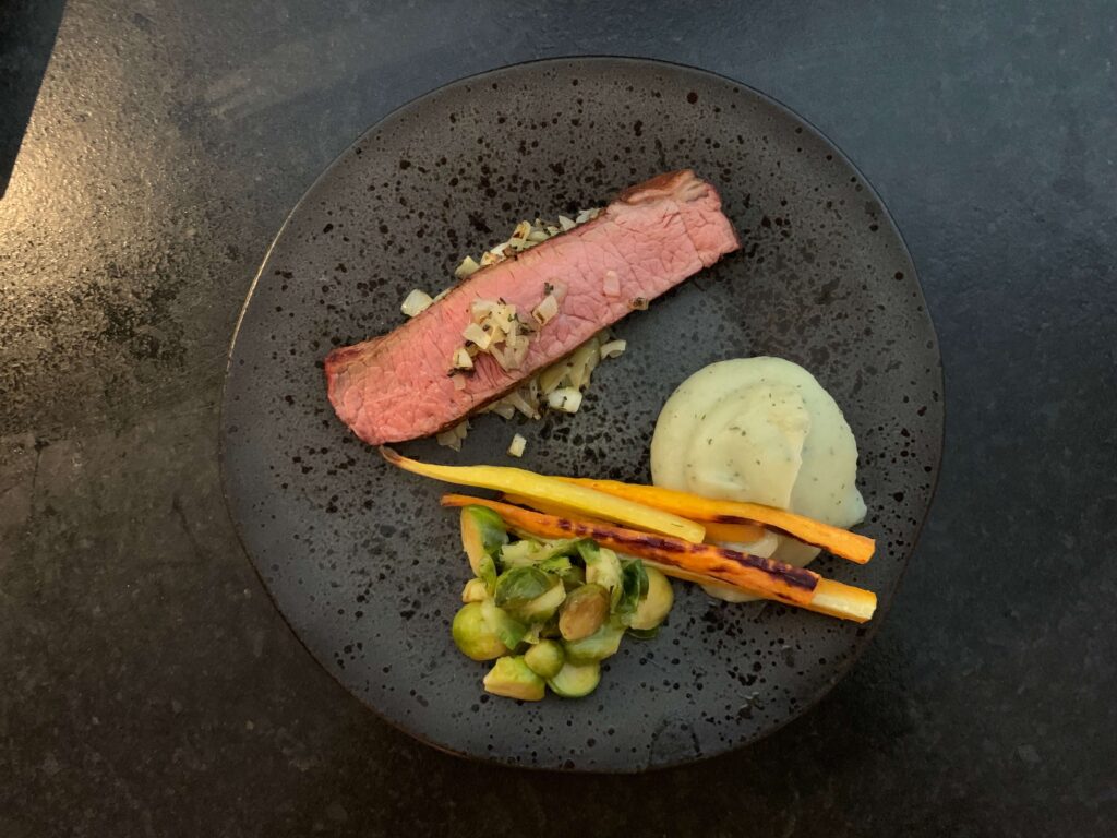 2. Tussengerecht: Bavette met rode wijnsaus, romanesco, peterseliewortel en 1000 laagjes aardappel