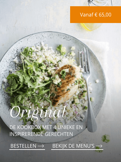 Heerlijke recepten met vis of vlees vind je in de original box. Tip: voeg ook de fruitmand toe. Dan heb je altijd appels, peren, bananen, kiwi’s etc in huis. Extra gezond dus en bovendien een luxe ervaring!