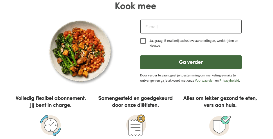 - Vouchers met een vast korting: bij veel maaltijdboxen hebben we vouchers gezien van €10, €15 of €25. Dit bedrag wordt dan direct in mindering gebracht op je bestelling. Dit kan heel interessant zijn als je een kleinere box besteld.