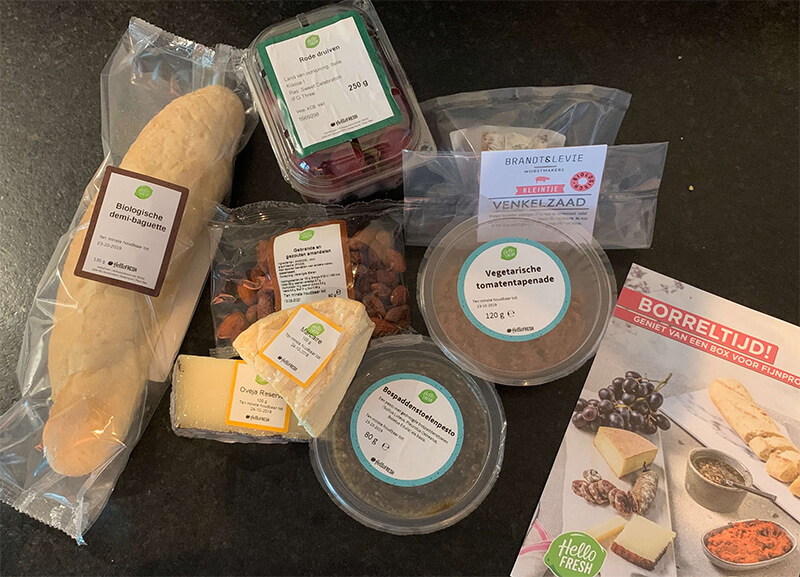 Inhoud van het borrelpakket van HelloFresh