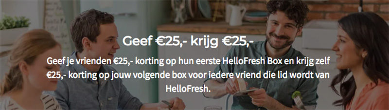 • Geef €25,- krijg €25: Jij geeft een vriend €25,- korting op zijn/haar eerste box, en jij ontvang zelf ook €25,- korting op jouw volgende box