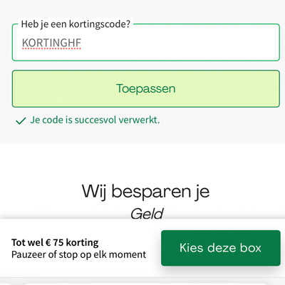 €100,00 korting Tot €90 voordeel op eerste 5 boxen Geldig tot 30/12/2025