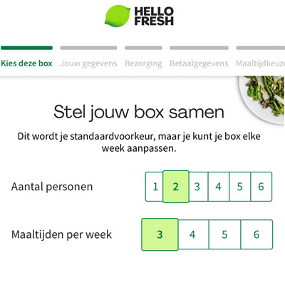 Stap 2: Kies type box, aantal personen en maaltijden