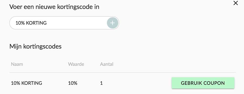 De korting wordt automatisch verwerkt. Een handmatige couponcode invullen is ook mogelijk