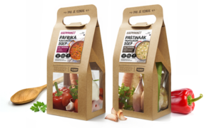 Een ander onderdeel binnen de verspakket producten zijn de soepen. Het principe is hetzelfde; in een soeppakket zitten veel verschillende (gezonde) ingredienten om een heel rijke maaltijdsoep te maken. Altijd inclusief een duidelijk recept. Mocht je vlees of vis in de soep willen gebruiken moet dit vaak nog los aangeschaft worden. De maaltijdsoepen zijn rijk aan vitamines en zijn goed vullend. Populaire soeppakketten zijn die met groentesoep, uiensoep, tomatensoep, linzensoep, erwtensoep, thaise-soepen, pittige soepen en natuurlijk pompoensoep, courgettesoep en kokossoep. Zowel lekker voor thuis als op kantoor. De soepen zijn kindvriendelijke en erg toegankelijk qua smaak. Doorgaans ook niet te zout (hier heb je natuurlijk ook zelf invloed op).